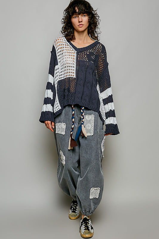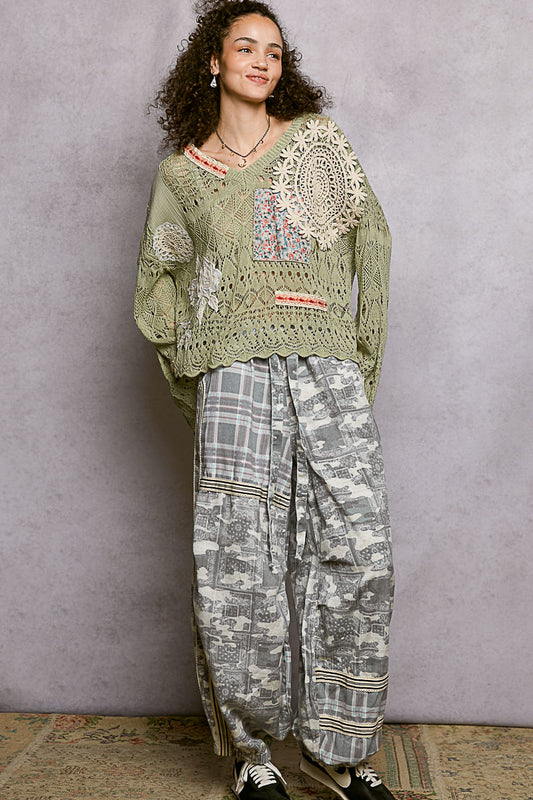 V-Neck Crochet Sweater