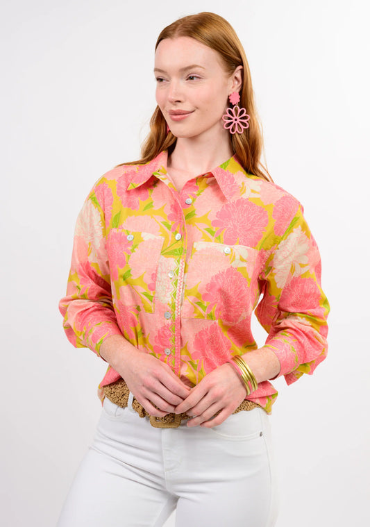 Campshirt With Shirring Detail In Soft Cambric Fabric