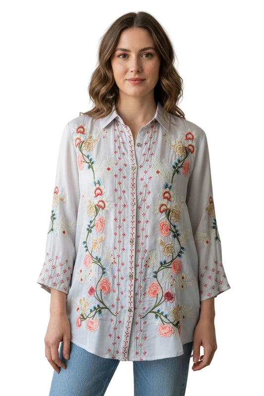 Classic Soft Denim Shirt With Roll-Up Sleeves
