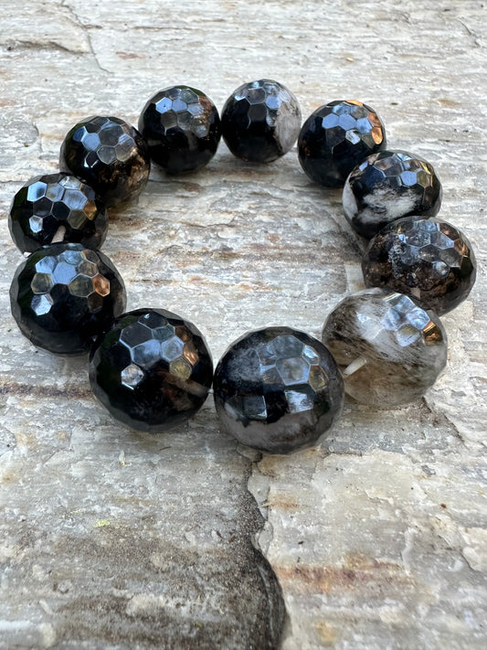 Natural Onyx Gemstone Bead Elastic Bracelet