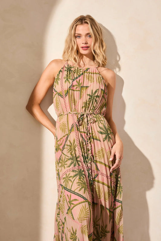 Plissé Chiffon Halter Neck Sleeveless Maxi Dress