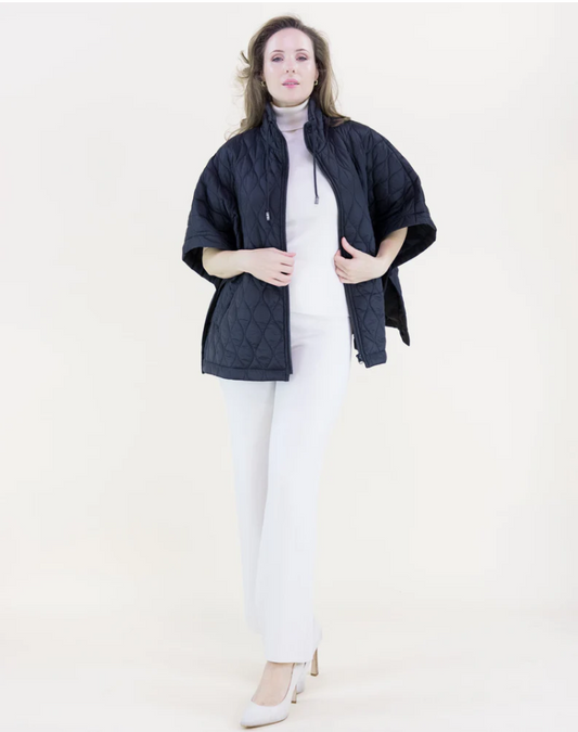 Boxy Funnel Neck Side Snaps Cocoon Puffer Poncho