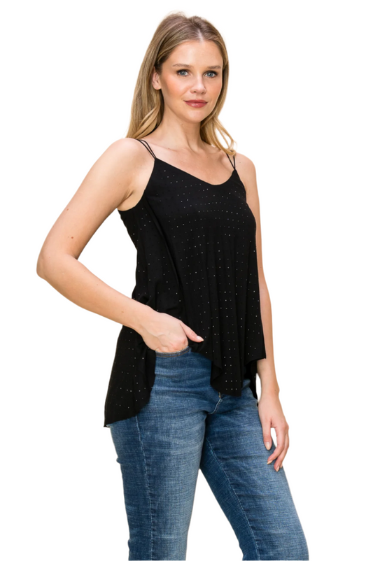 V-Neck Rhinestone Embellished Spaghetti Strap Top