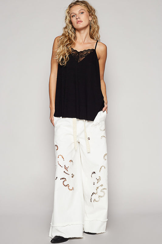 Spaghetti Strap Rib Top with Lace Front