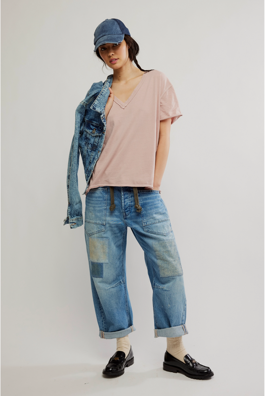 Easy Paneled V-Neck Tee - Loulia