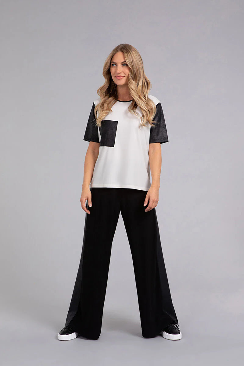 - Made in our signature effortless Jersey fabric with a Faux Leather addition.