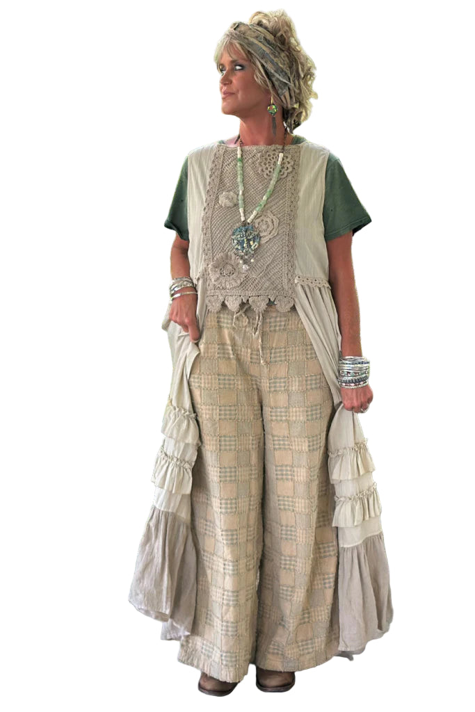 Discover the ultimate comfort and style with our wide-leg pants! Designed with an elastic waistband for a perfect fit, these pants showcase a charming quilted check pattern. Crafted from 100% cotton, they promise a soft, breathable feel that you’ll love wearing all day. Upgrade your wardrobe with this versatile piece!