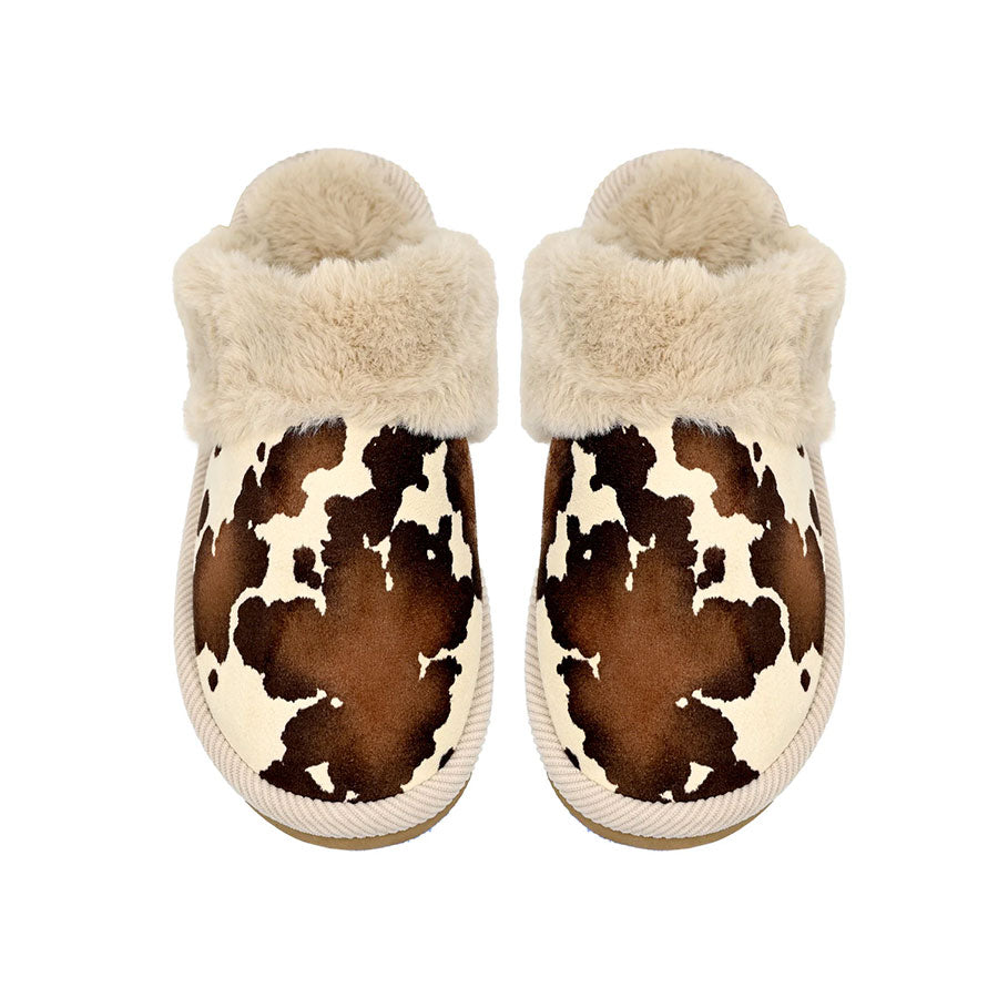 Cow Print Faux Fur Slippers