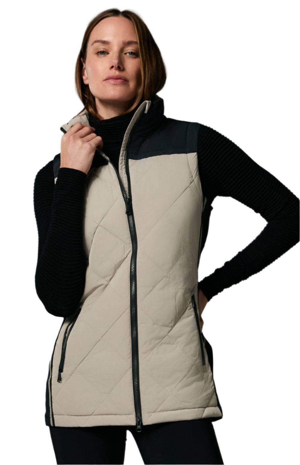 - Longer body length that hits below the hip, center back length 28¼ size S
