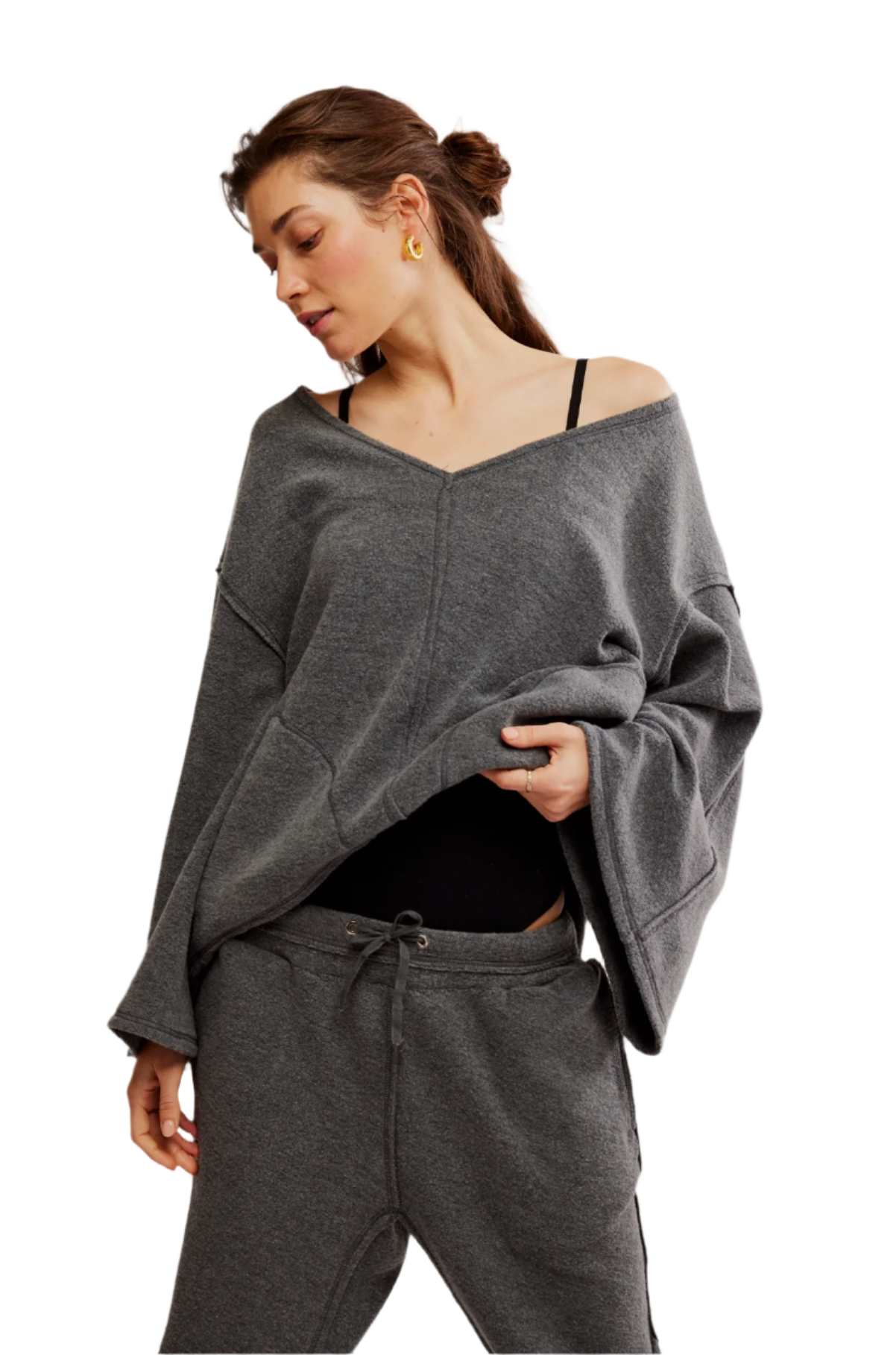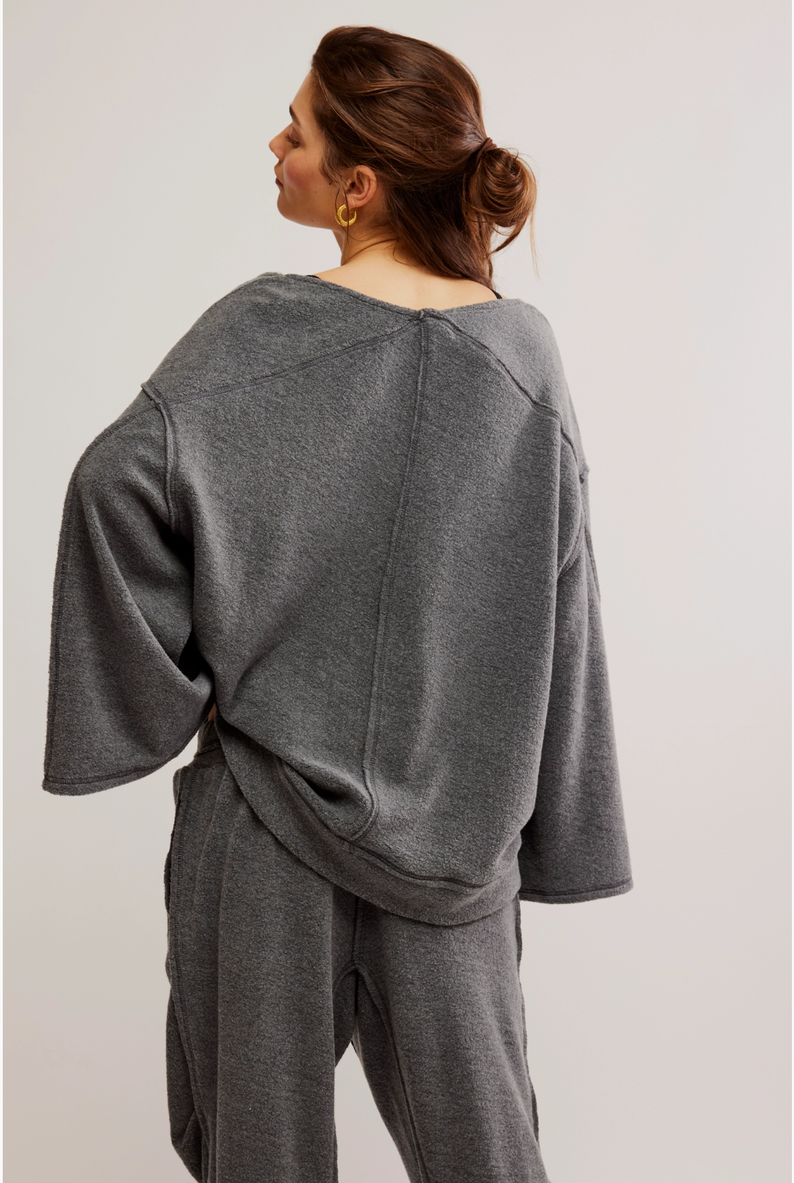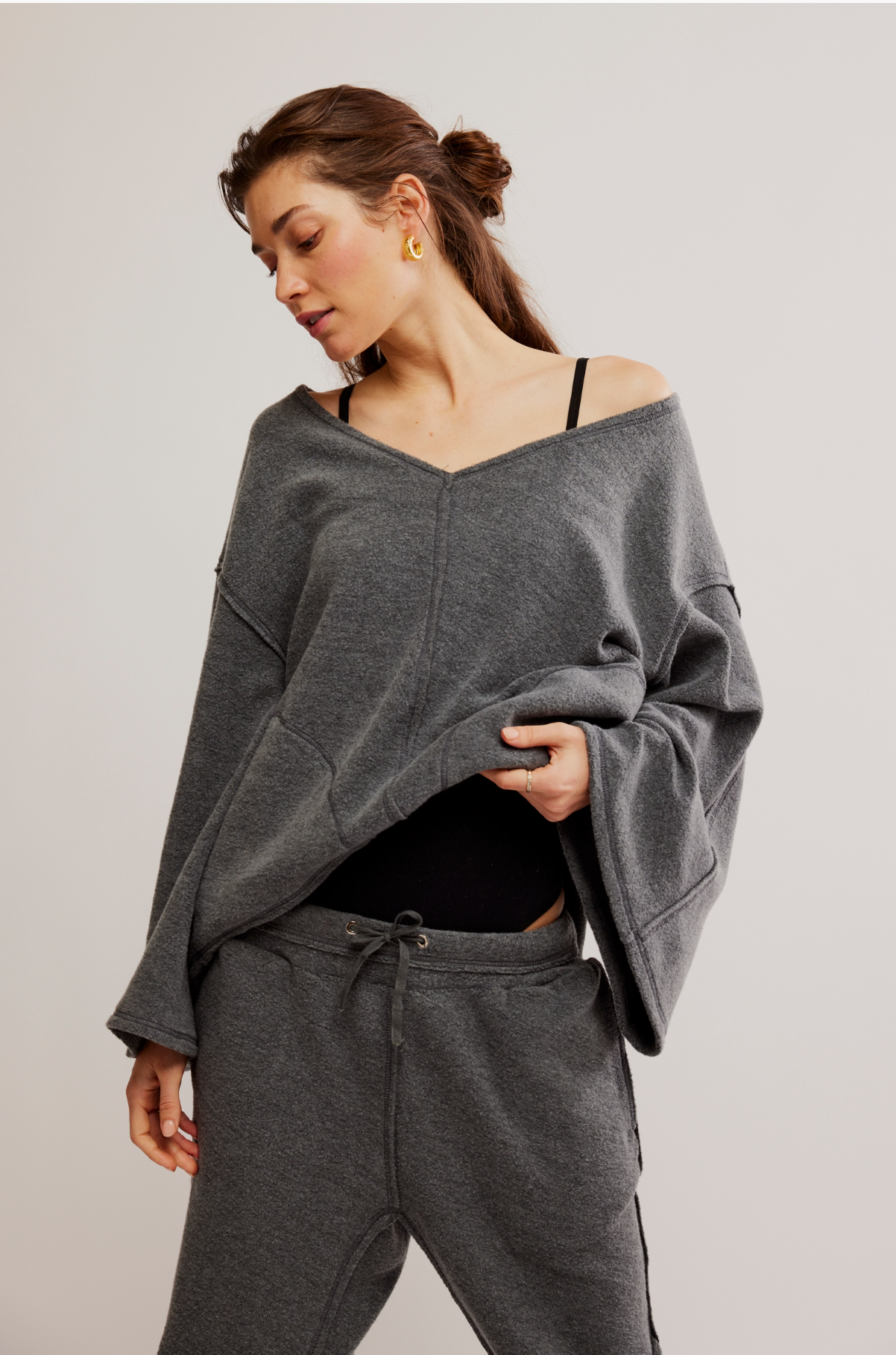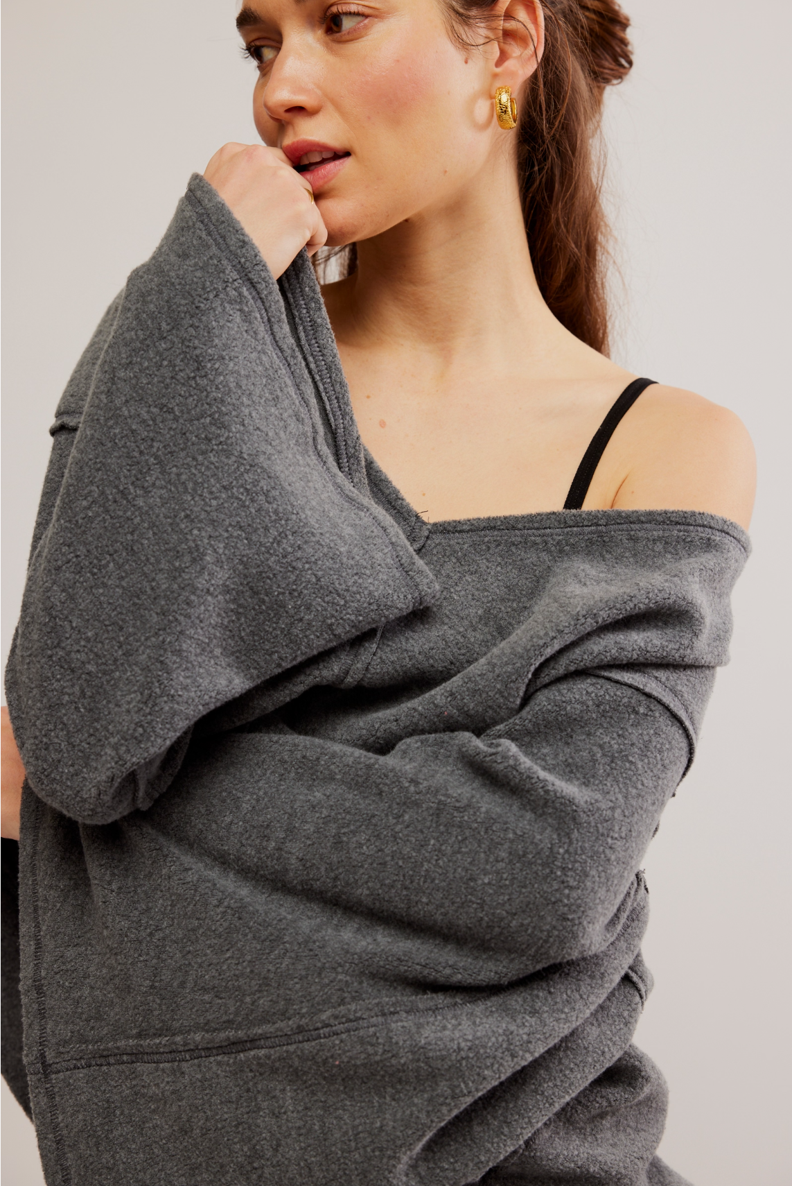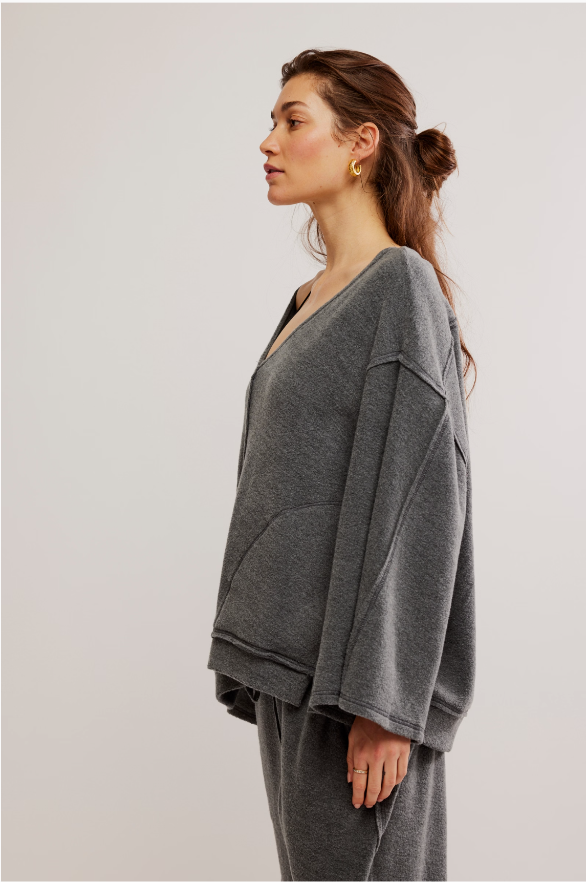Get ready to elevate your weekends with this ultra-soft top! It features a relaxed fit, long sleeves, and a flattering V-neckline. The oversized patch pockets combine charm and practicality. Made from cozy fleece, this laid-back long-sleeve top is essential for lounging and enjoying your free time.