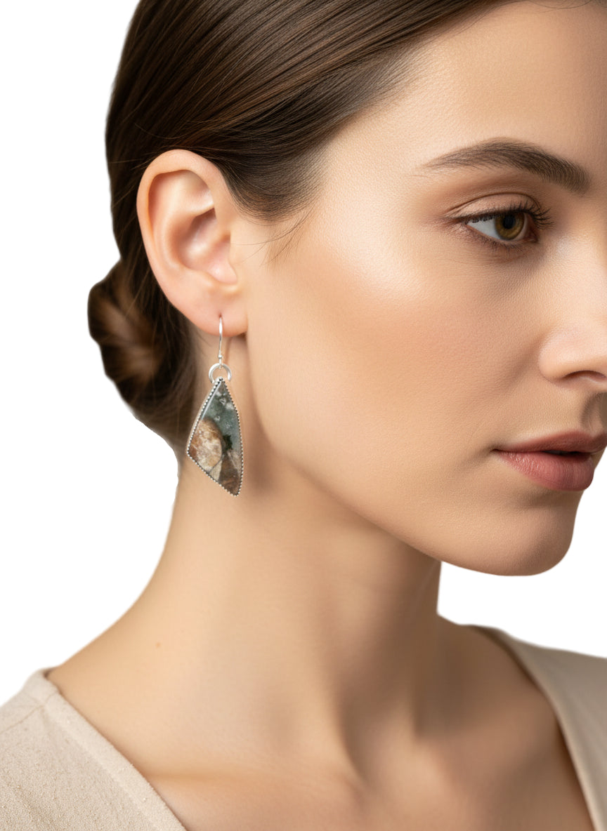 Explore the exquisite beauty of our earring set, featuring stunning Indonesian opal palm wood stone earrings, beautifully crafted in sterling silver. Elevate your style and make a statement with this unique piece of jewelry!