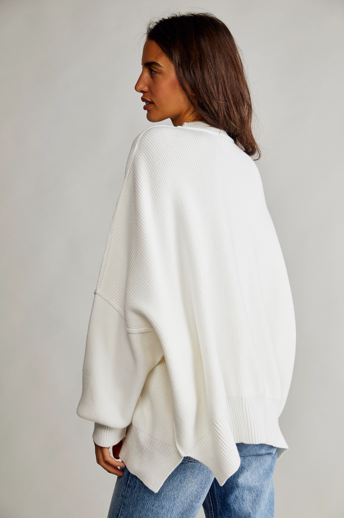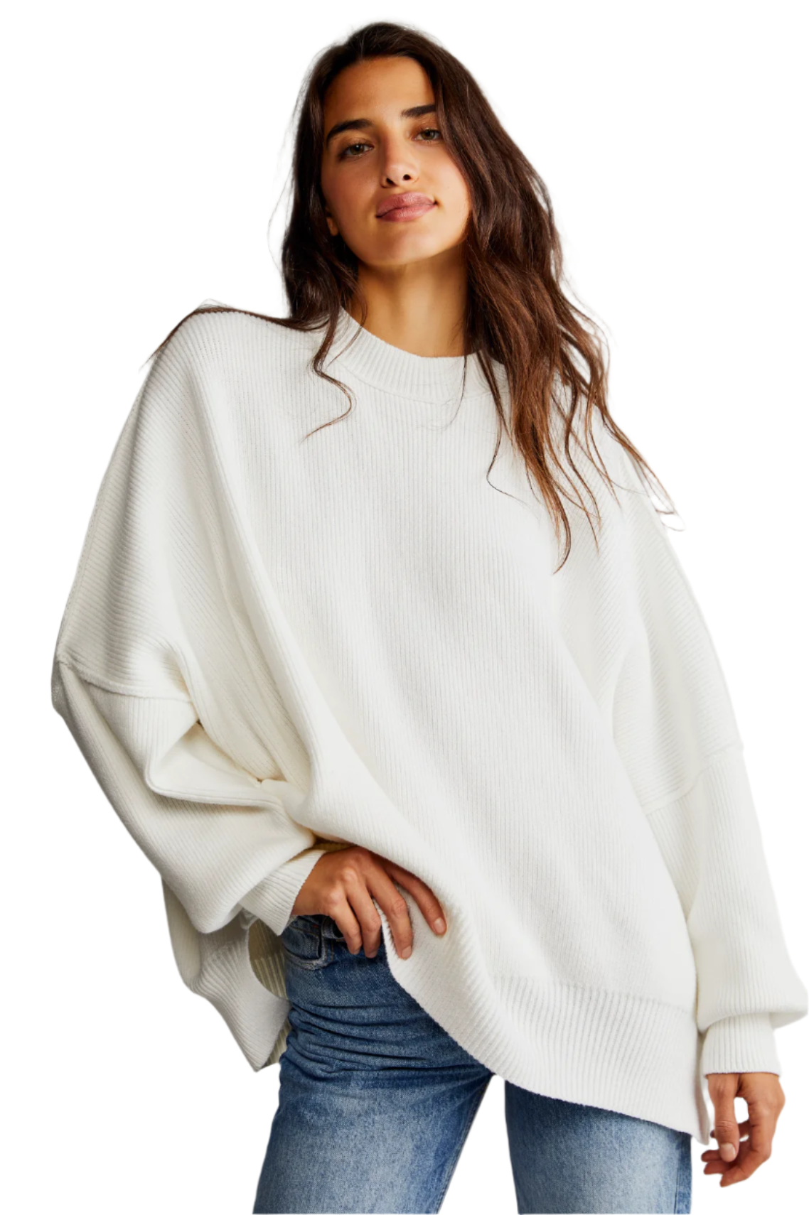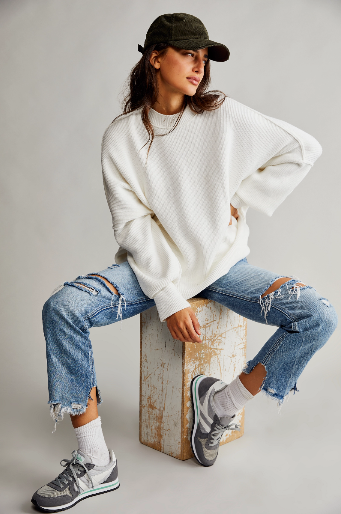 Ribbed mock neck pullover sweater featured in a tunic length.