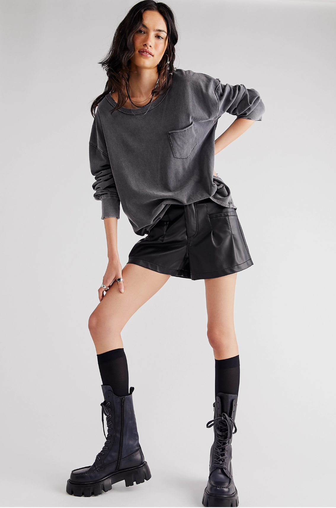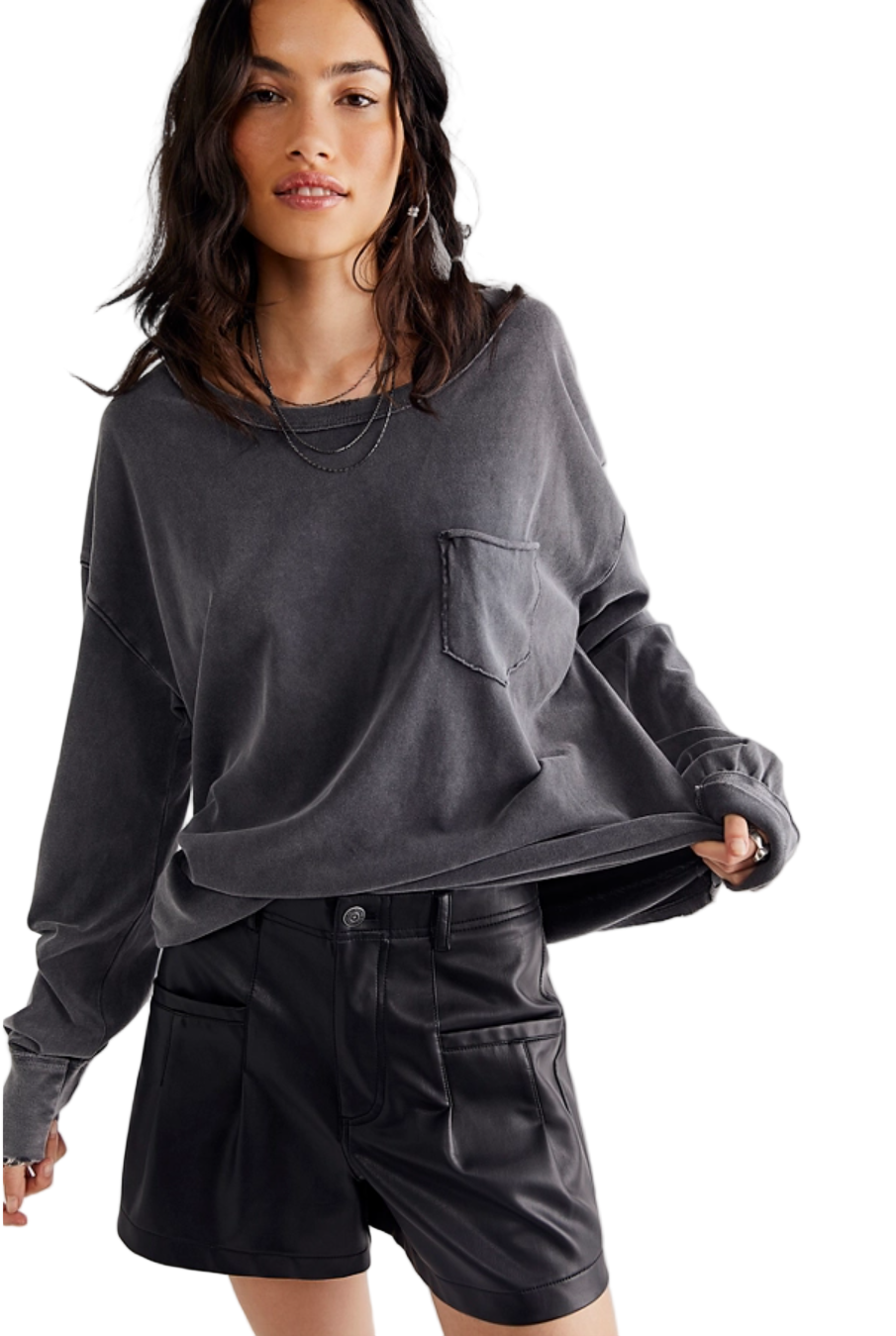 Discover the perfect blend of comfort and style with this timeless long-sleeve tee. Designed for effortless wear, it showcases distressed seams that lend a genuine, lived-in look. With a slouchy, relaxed fit, this tee features a flattering scoop neckline, a practical front bust patch pocket, and trendy dropped shoulders. Elevate your wardrobe with this essential staple that combines laid-back vibes with undeniable charm.