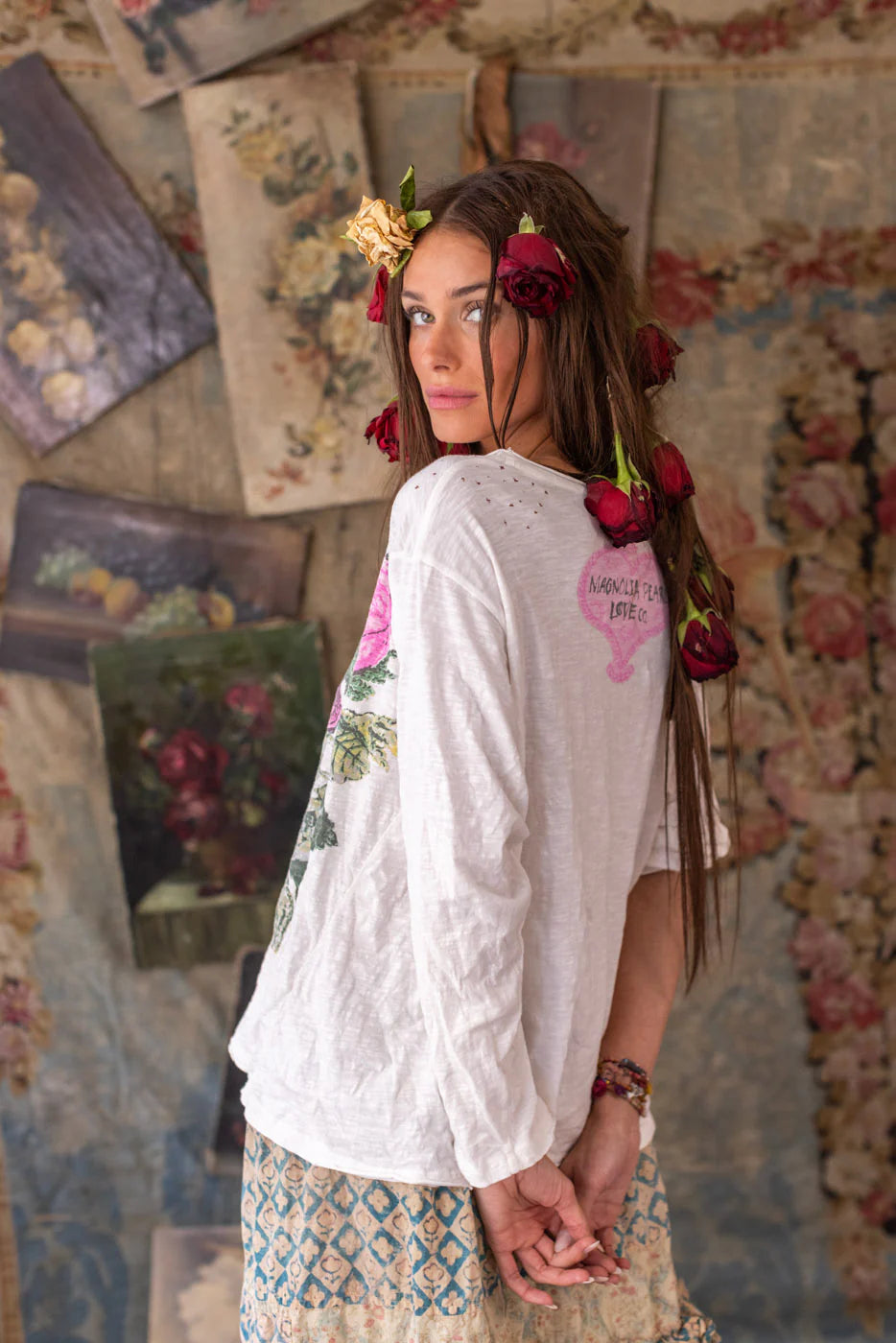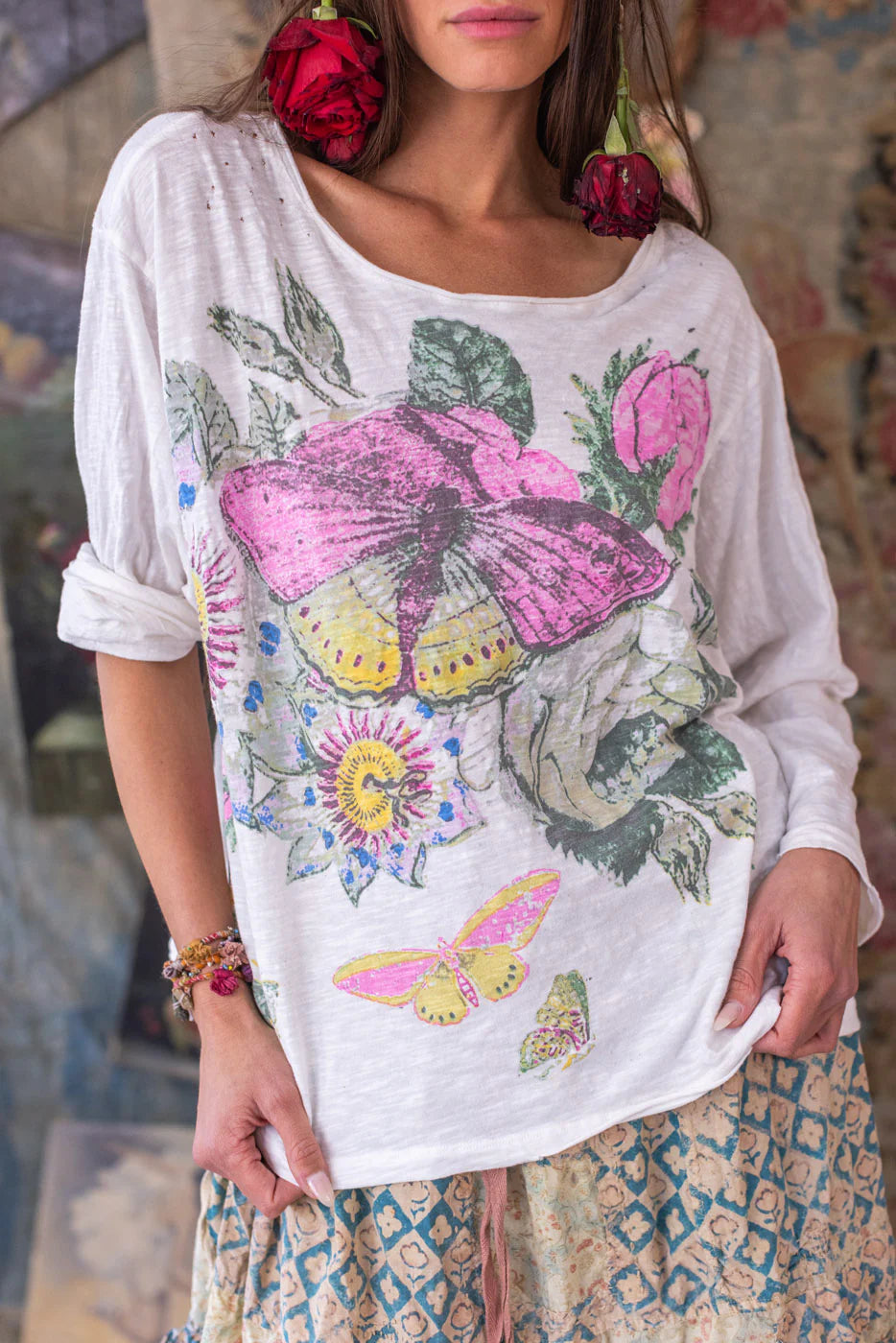 - Hand-Distressing (Small Holes) at Shoulders, Neckline & Hems