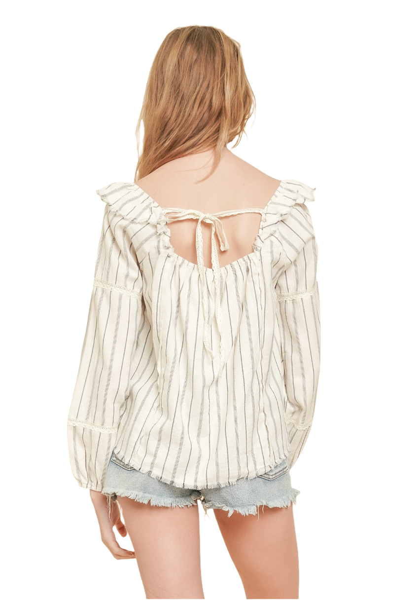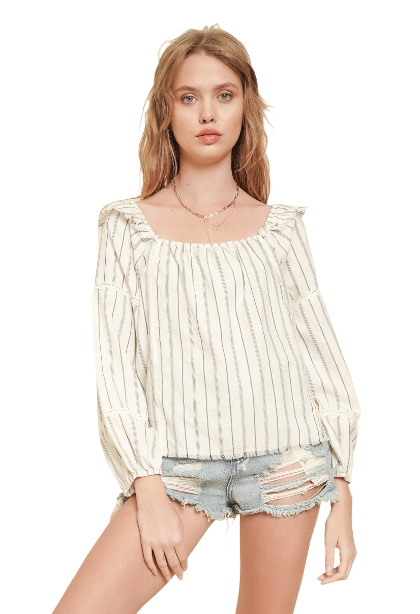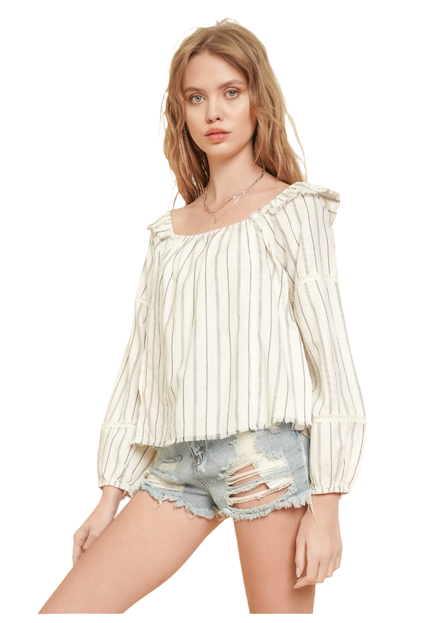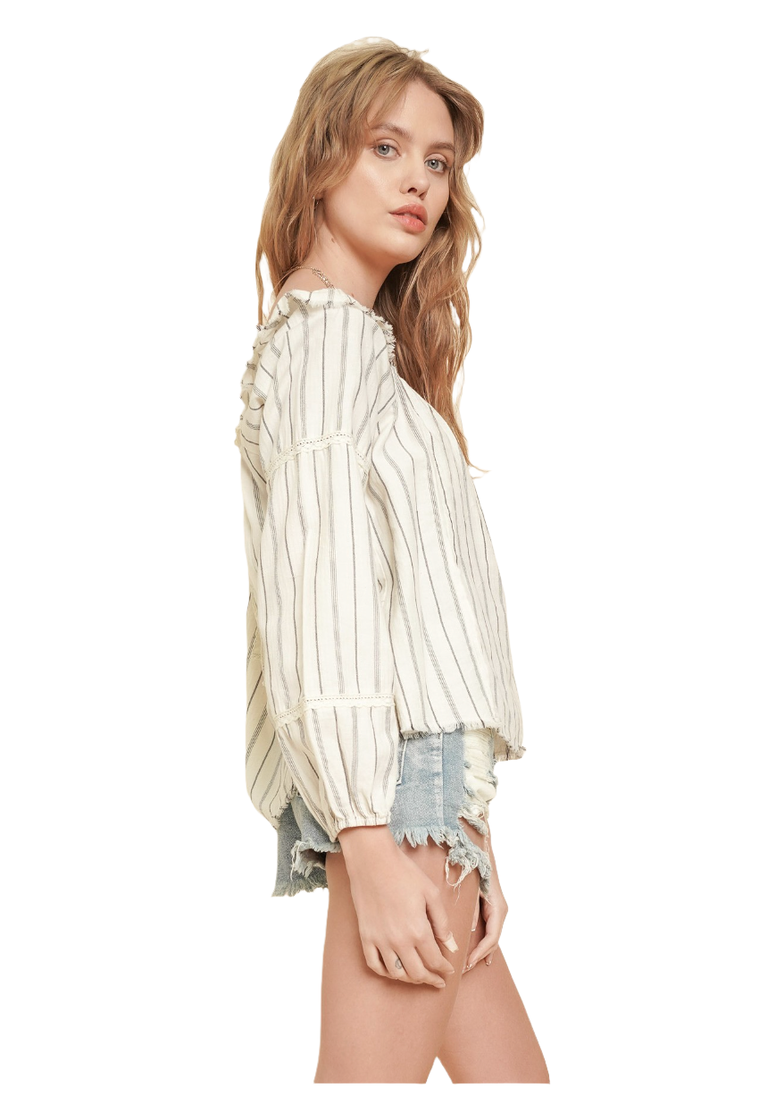 Fringe Hem Crochet Trimmed Stripe Blouse
