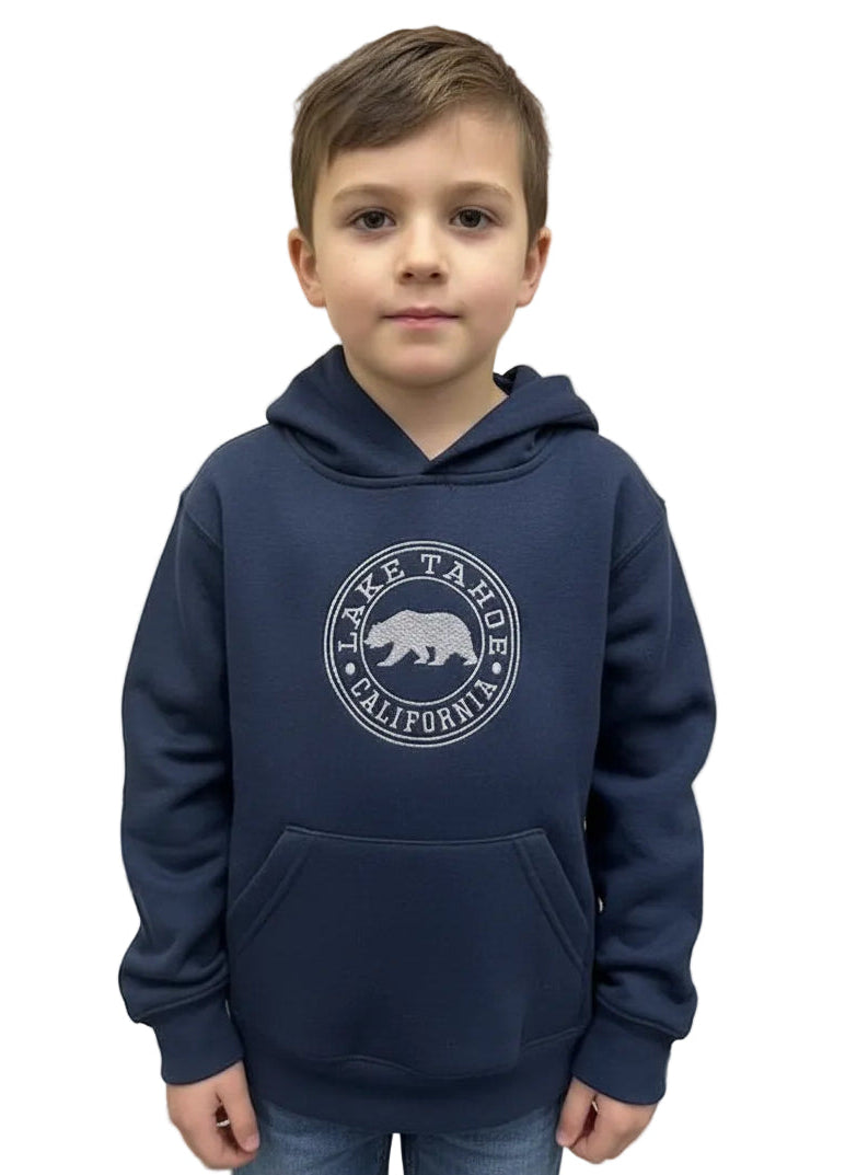Introduce your child to comfort and style with our hooded kids' sweatshirt! This cozy piece features a charming embroidered bear design along with a vibrant Lake Tahoe, California graphic. Crafted from a soft blend of 52% cotton and 48% polyester, it offers the perfect combination of warmth and durability for all their adventures. Don't miss out on this stylish addition to their wardrobe!