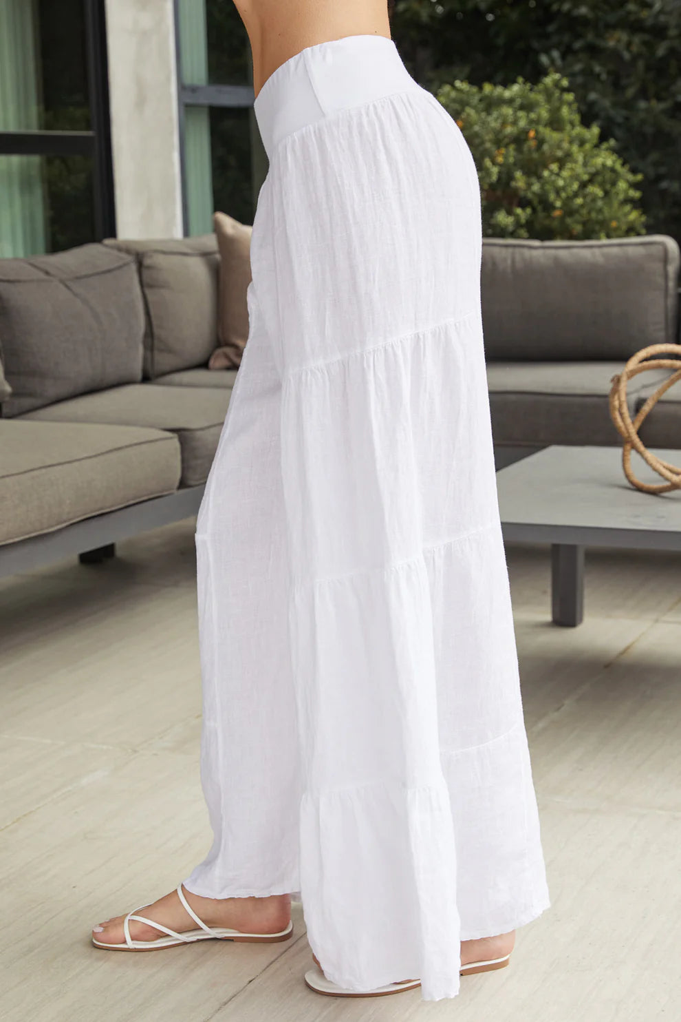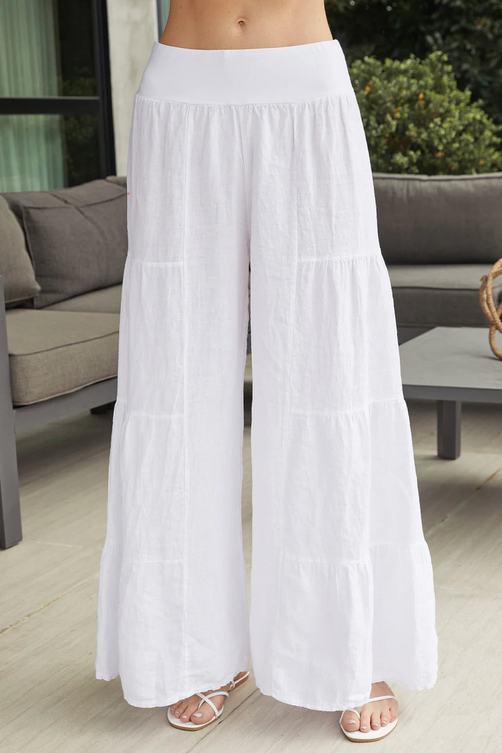Experience the luxurious comfort of 100% linen. This lightweight, breathable fabric keeps you feeling fresh and comfortable throughout the day. Designed with a relaxed silhouette and a flattering elastic waistband, it's the perfect choice for any outfit or activity. Elevate your wardrobe and enjoy effortless style today!