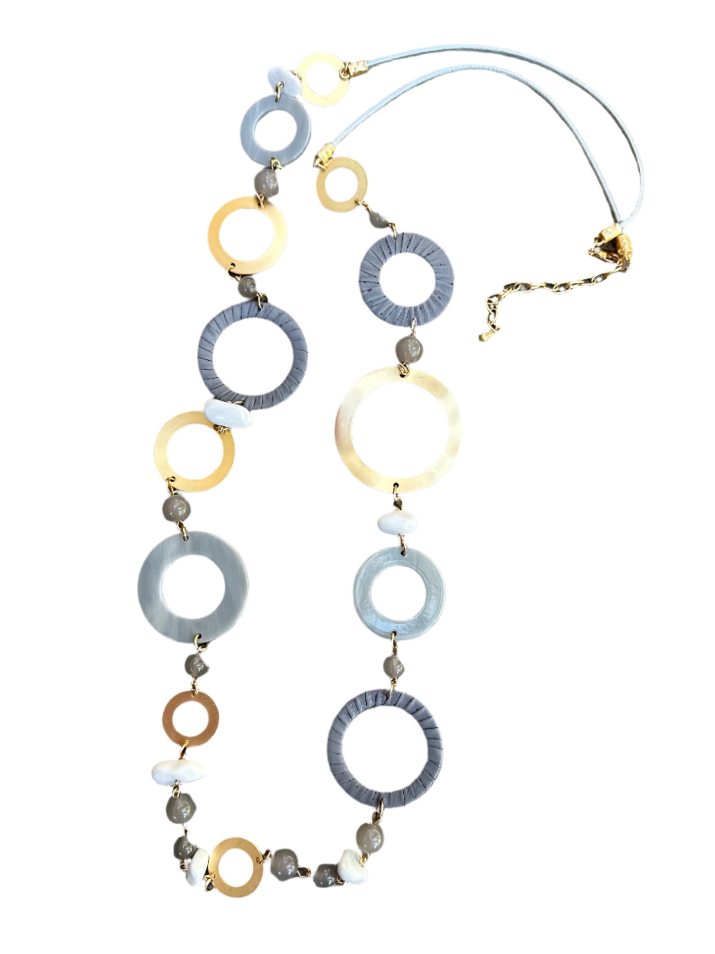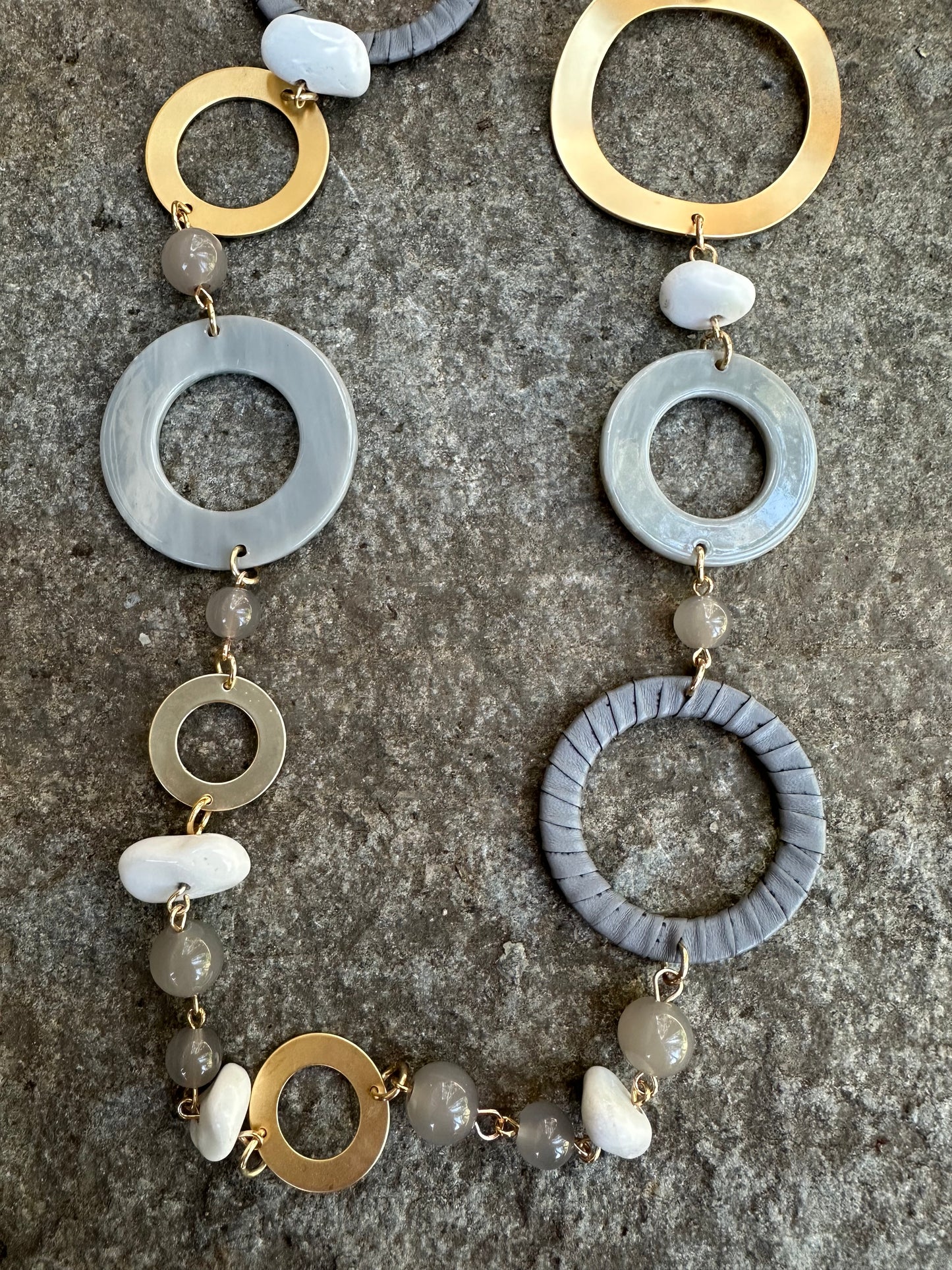 This mixed-media necklace incorporates a contemporary feel with its design and adds character to complement any ensemble.