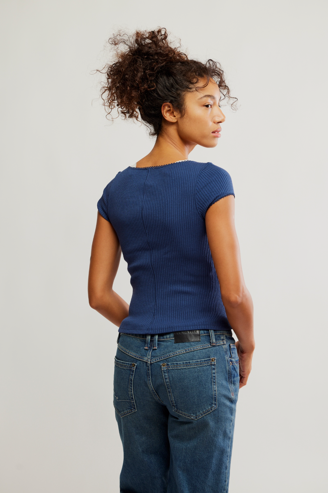 Experience a sleek and stylish fit with our form-fitting, full-length design. This piece showcases a luxurious ribbed sweatshirt fabrication, complemented by a classic crew neckline and a convenient button-front closure. With capped sleeves and delicate picot trim, this garment combines elegance with comfort, making it a must-have addition to your wardrobe. Embrace effortless style today!