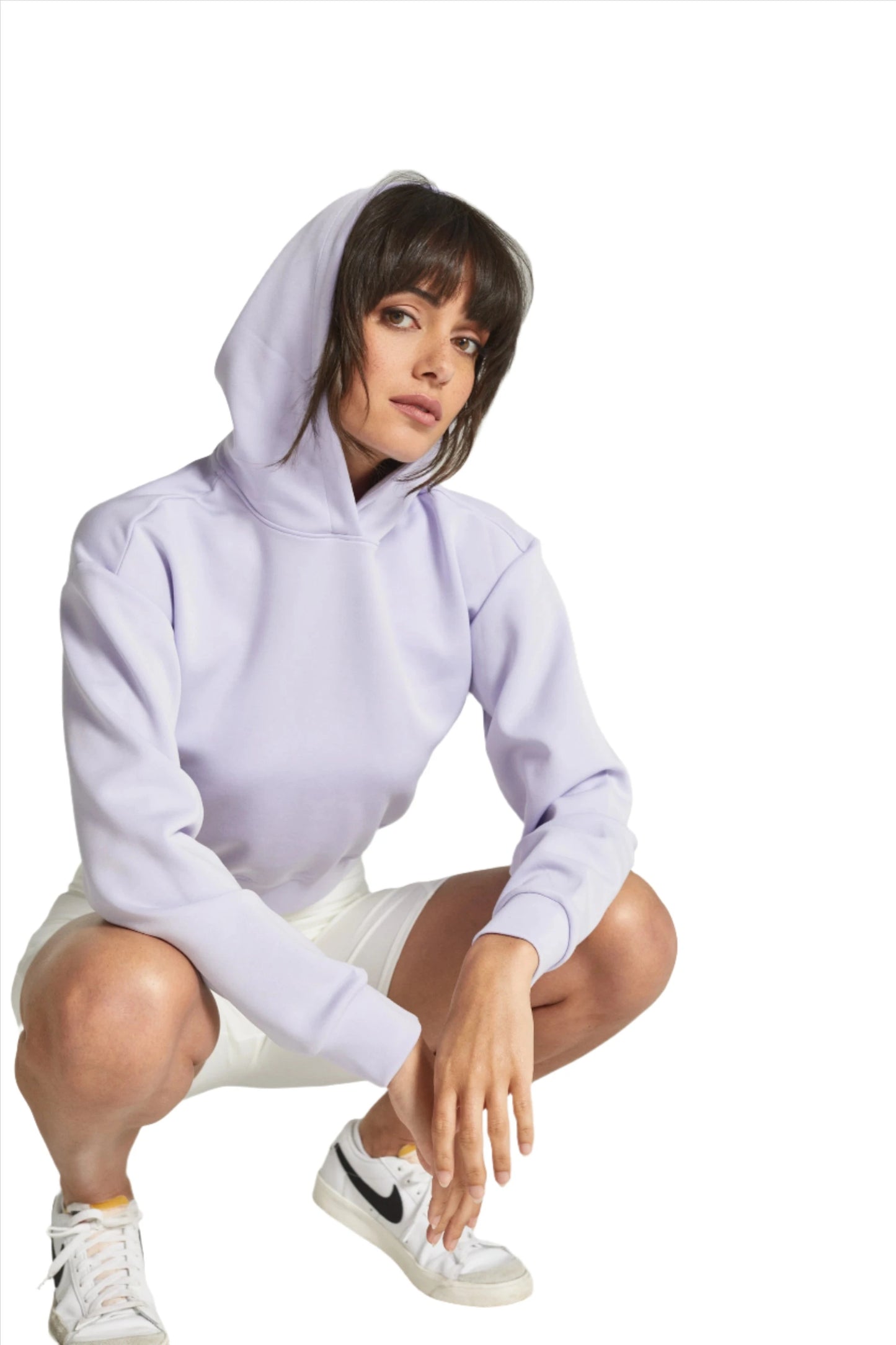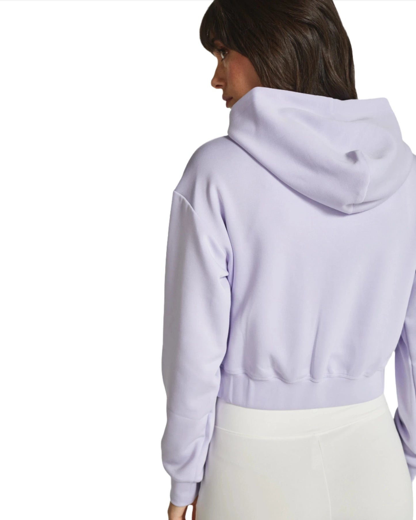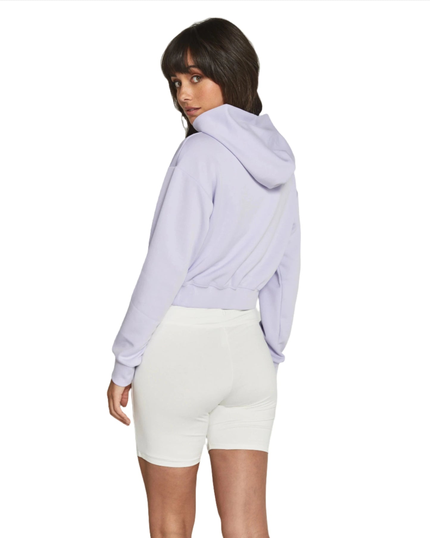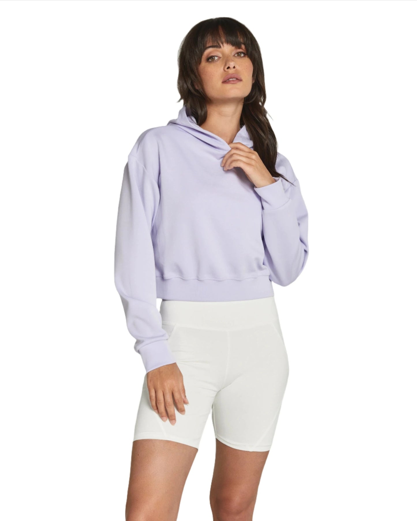 A relaxed crop hoodie with a buttery-soft modal fabrication. Wear over a basic or by itself and complete the look with joggers or biker shorts.