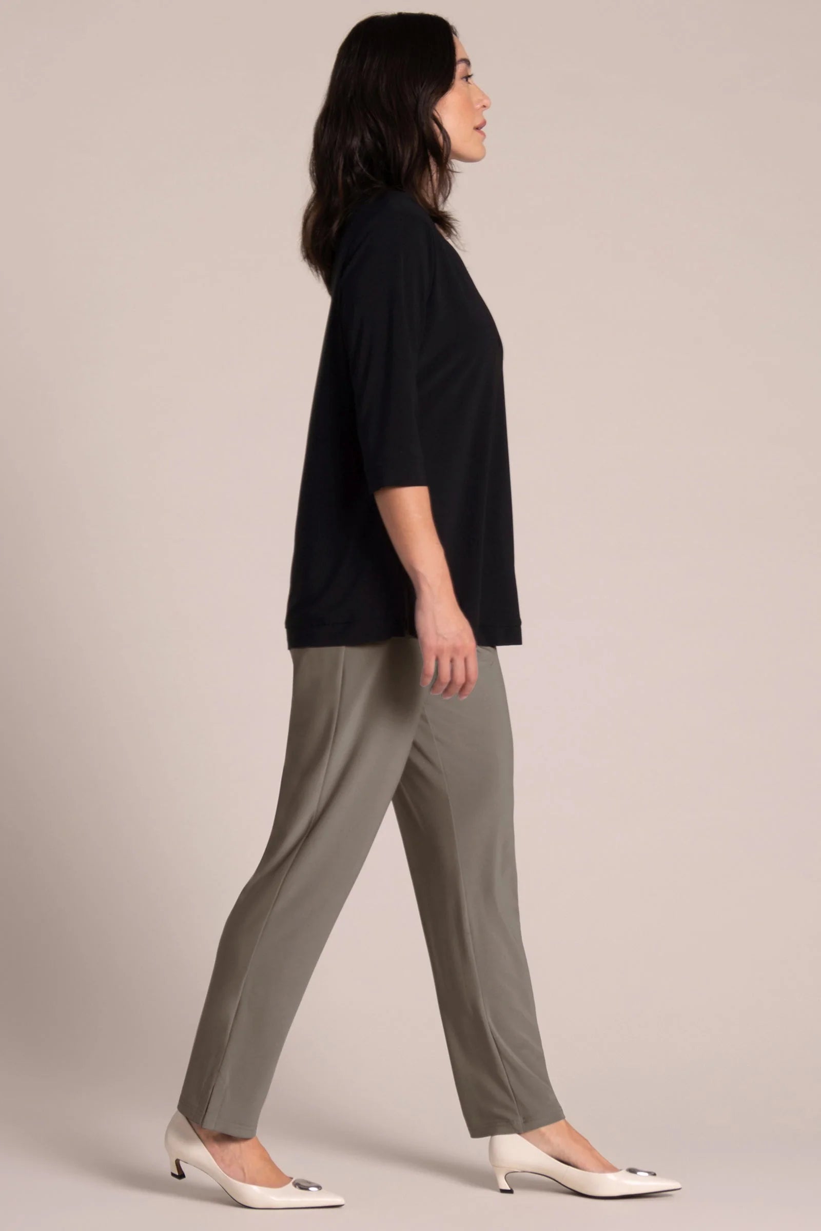 - Classic fit matching our top selling classic go to t. With flattering side slits and raw edge finishing.