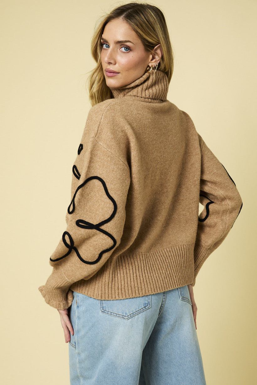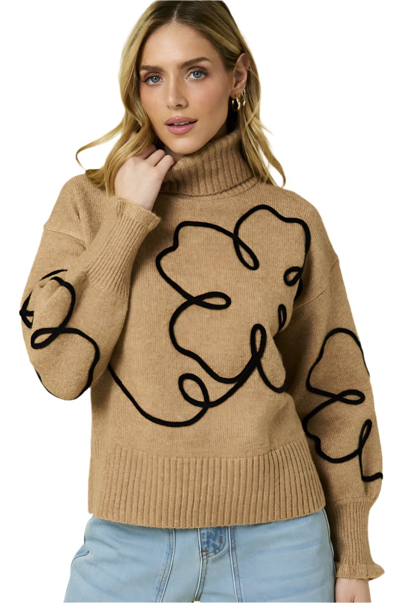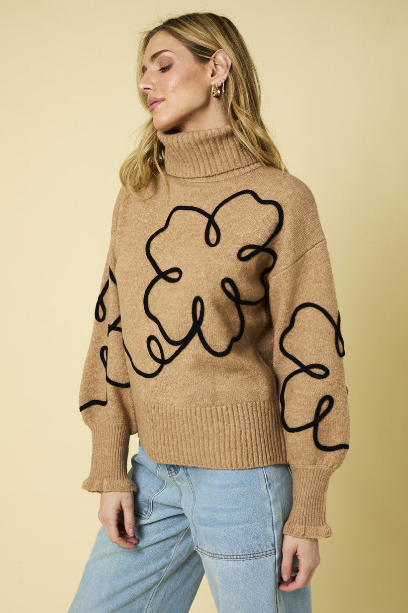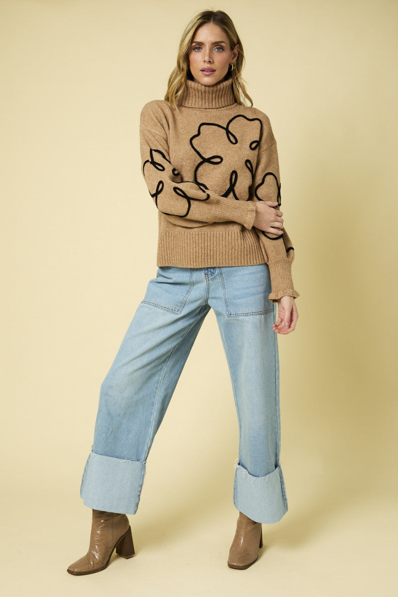 Turtleneck Flower Print Sweater