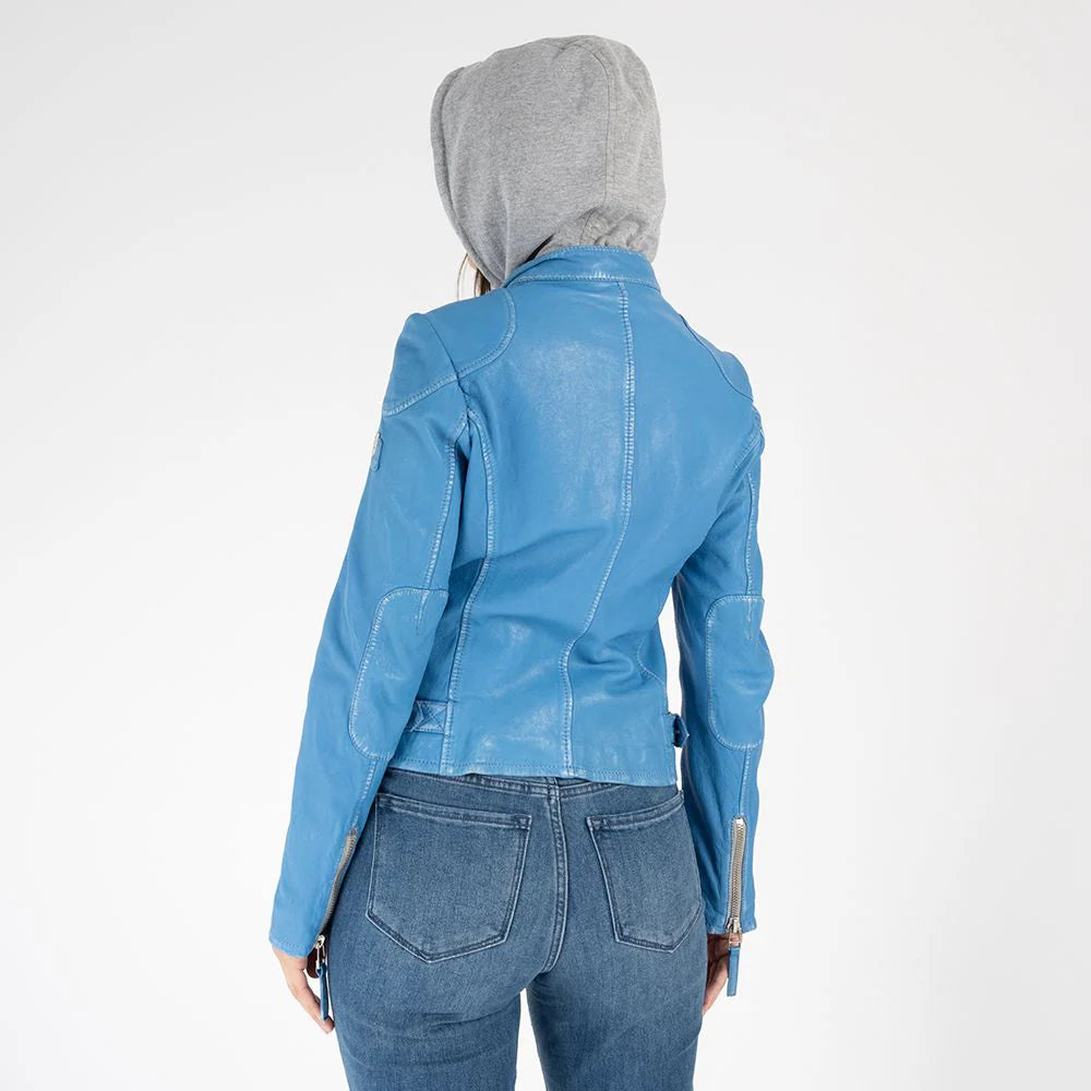 Experience the luxury of genuine lambskin nappa leather with this classic piece, designed to elevate your wardrobe. With its sleek, clean lines and unique distressed seams, it exudes sophistication. The removable fleece hood adds a touch of versatility, making it the perfect choice for any occasion. Embrace style and practicality in one stunning design.